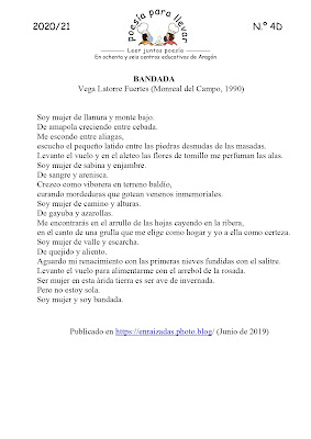 El poema que hemos elegido es «Bandada» de Vega Latorre Fuertes, coautora junto a la fotógrafa Guada Caulín de «Enraizadas. Mujeres bajo un mismo cielo», exposición en la que se muestra la realidad y diversidad de las mujeres de la Comarca del Jiloca. Coincide casi la publicación de este poema con la celebración del Día Universal del Orgullo Rural, los textos de esta autora muestran un fuerte sentimiento de arraigo y de hermandad con las mujeres que habitan en el rural.Este año en el Cpepa Cella distribuimos poesía a través de la plataforma Aeducar, todos los alumnos están matriculados en un espacio-curso llamado «Aquí contamos todos» donde además de leer las poesías semanales, se puede opinar a través del foro e invitamos a que nos recomienden libros, películas, actos culturales…