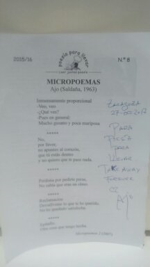 Dedicatoria de Ajo para POESÍA PARA LLEVAR