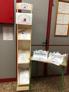 Como veis en las fotos, la Casa del Canal cuenta nada menos que con tres puntos de difusión: el tablón de anuncios exterior, el expositor del hall realizado por el alumnado de carpintería y una estantería en la biblioteca.