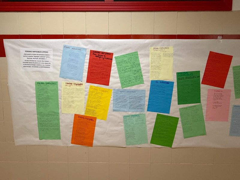 Muchísimas gracias también por la batería de actividades: Nuestros miedos y nuestras inseguridades (1ºESO. Dpto. Lengua); Calligrammes inspirès du poème “Apología y petición” de Jaime Gil de Biedma, (1ºESO. Dpto. Francés); Poemas imposibles, (2ºESO. Dpto. Lengua); Una reacción para transformar España, (2ºESO PAI. Dpto. Física y Química); Carta a España desde el exilio, (3ºESO. Dpto. Lengua); España entre demonios y hombres: pobreza, política y ciudadanía, 3ºESO. Dptos. Geografía e historia y Economía); Apologías y peticiones, (4ºESO. Dpto. Lengua); La lavandería de la historia, (4ºESO. Dpto. Artes plásticas); La música del poema, (4ºESO. Dpto. Música); La vida iba en serio: un recorrido por la vida de Jaime Gil de Biedma, (4ºESO, 1º y 2ºBachillerato. Dptos. Lengua y Catalán); Grandes demonios de la literatura universal, (1ºBachillerato. Dpto. Lengua); Demonios actuales, (1ºBachillerato. Dpto. Lengua); Demonios en la literatura francesa., (1ºBachillerato. Dpto. Francés); España respira, (1ºBachillerato. Dpto. Biología); Apología et Petitio, (1ºBachillerato. Dpto. Clásicas); Himnos (1ºBachillerato. Dpto. Inglés); Cuando el odio ocupa la calle, ¿quién gobierna de verdad?,(2º FPB. Dpto. Lengua) y Los demonios también suenan ( Dpto. Lengua). Habéis conseguido que todo el instituto colabore en el número. Enhorabuena por vuestro trabajo y el de toda vuestra comunidad educativa.