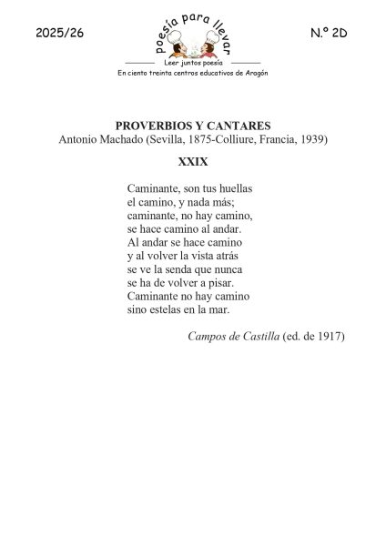 El IES María Moliner rinde homenaje a Machado y nos invita a leer unos de sus poemas más conocidos, no os dejéis engañar por el título, en el número 2D.