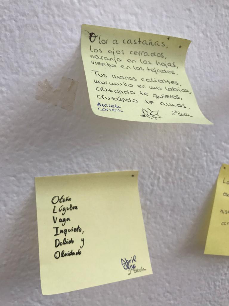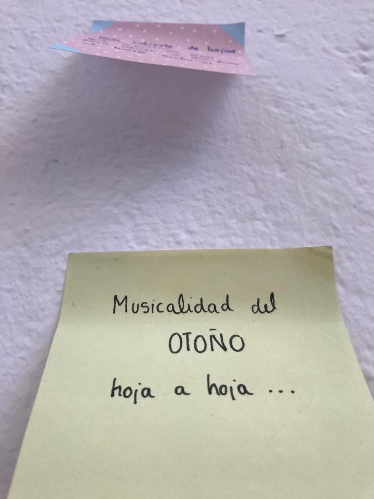 Hemos leído y disfrutado esta melodía y los estudiantes de 1.º y 2.º del bachillerato de Artes han escrito sus propios versos, breves sentencias poéticas que como efímeras hojas otoñales hemos colocado en la exposición.
