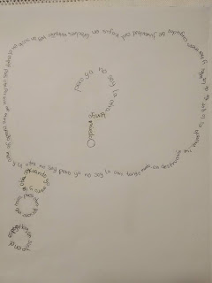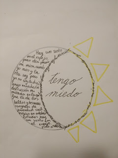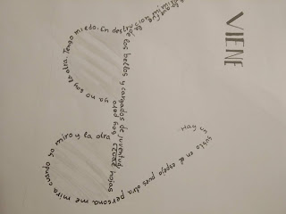 En cuanto a las actividades propuestas para el poema, os adjunto un enlace a la ficha de la que estamos trabajando de forma voluntaria y a algunas fotos de caligramas que ha realizado el alumnado de 1º de ESO.
