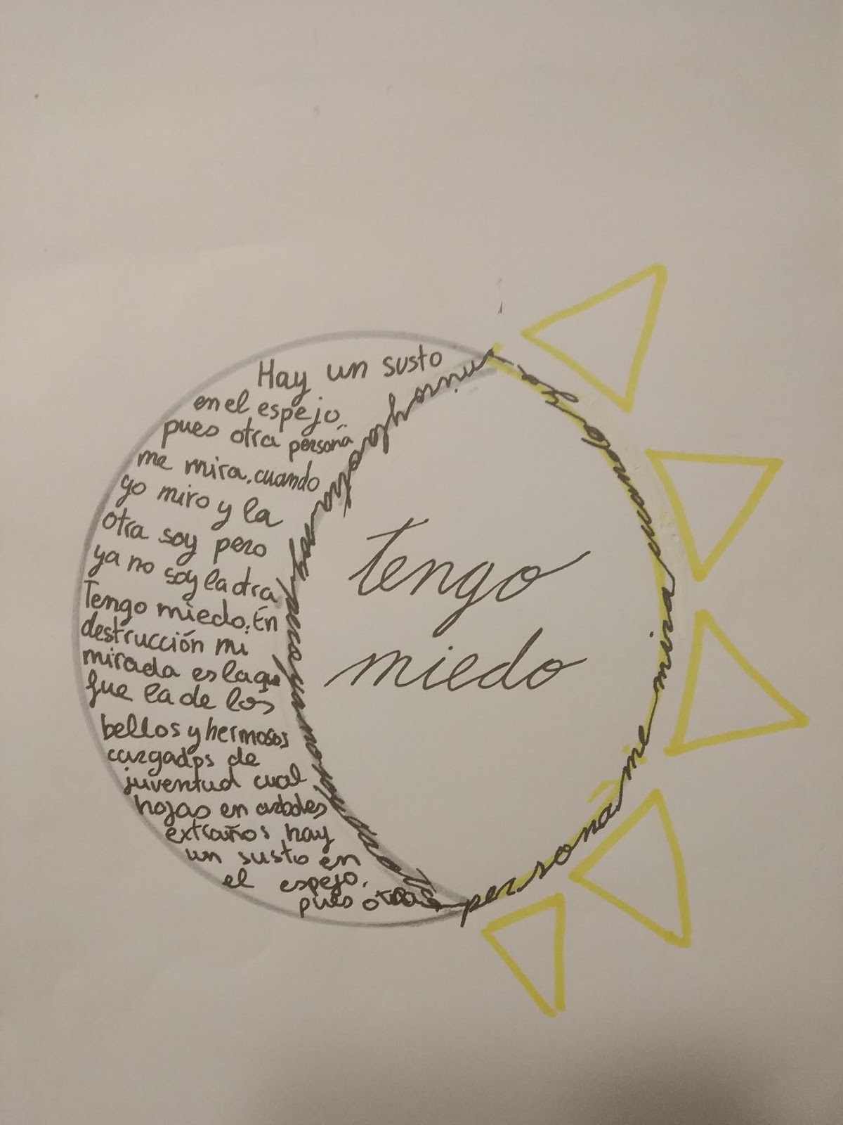En cuanto a las actividades propuestas para el poema, os adjunto un enlace a la ficha de la que estamos trabajando de forma voluntaria y a algunas fotos de caligramas que ha realizado el alumnado de 1º de ESO.
