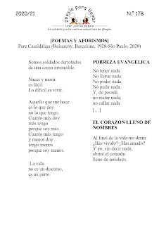 ¡Que disfrutéis de la lectura significativa, esperanzadora y generosa de Pere Casaldáliga!