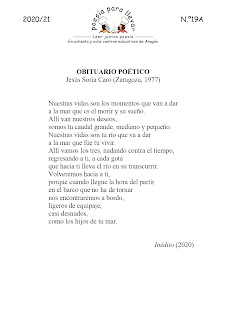 El número 19A nos llega desde el IES Río Gállego. El autor elegido es Jesús Soria y el poema, «Obituario poético». Es un homenaje al fallecimiento por COVID de un ser querido y en el poema, como muy bien comenta uno de los alumnos, el autor es capaz de «modificar los versos de otros poetas y unirlos para que cobre sentido en un suceso propio».
