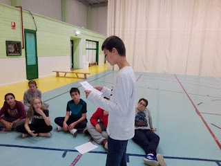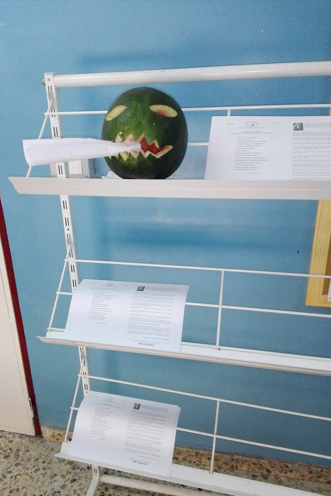 Desde el CPI La Jota nos mandan dos imágenes de hoy con el poema número 2. La primera calentando motores para Halloween. La segunda leyendo por las clases el maravilloso poema de Carmen Martín Gaite.