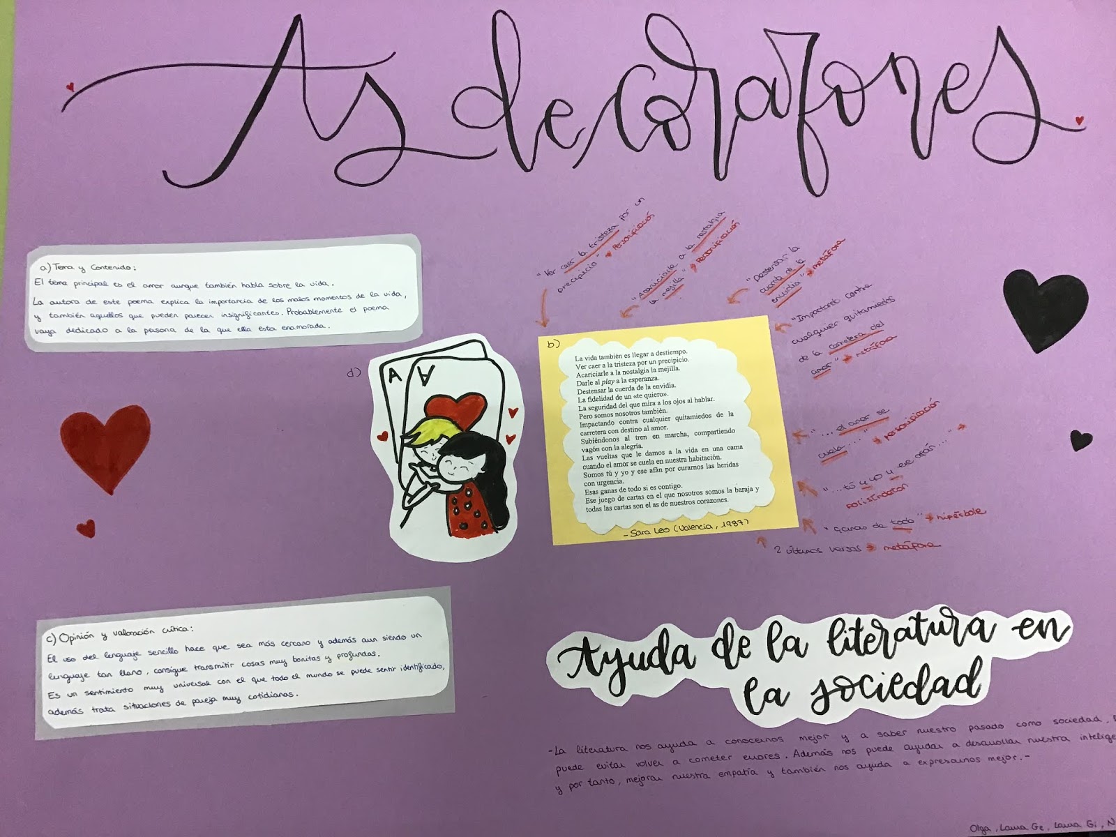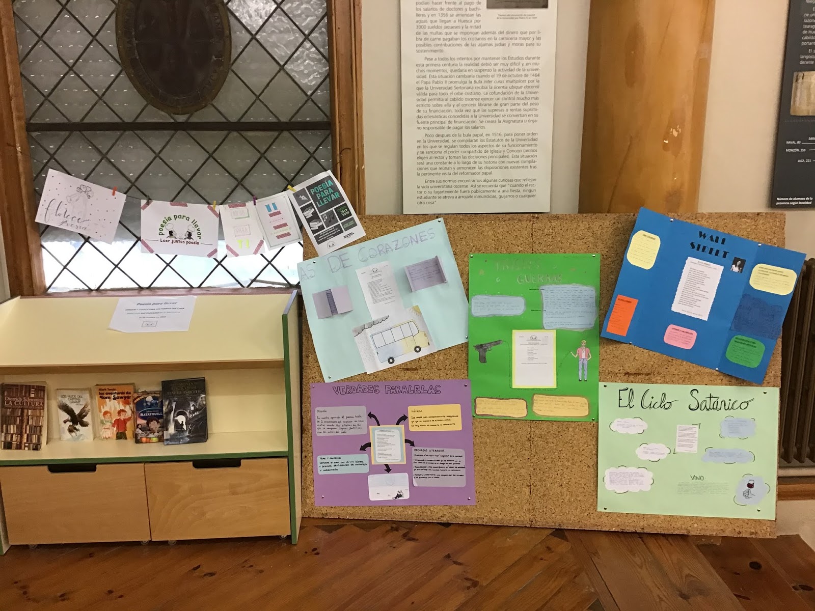 Desde el IES Ramón y Cajal nos cuentan también que han trabajado en grupo los 5 primeros poemas del curso. Adjuntamos fotos de los carteles que prepararon y de cómo ha quedado su rincón de poesía en la biblioteca del centro: