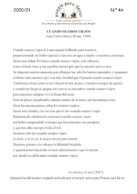 Despedimos el mes con un poema de amor servido desde el CPEPA Cinca Medio. Se trata de «Cuando seamos viejos» de Juan Carlos Marco y es un poema de amor diferente como muy bien nos explican nuestros compañeros del CPEPA: