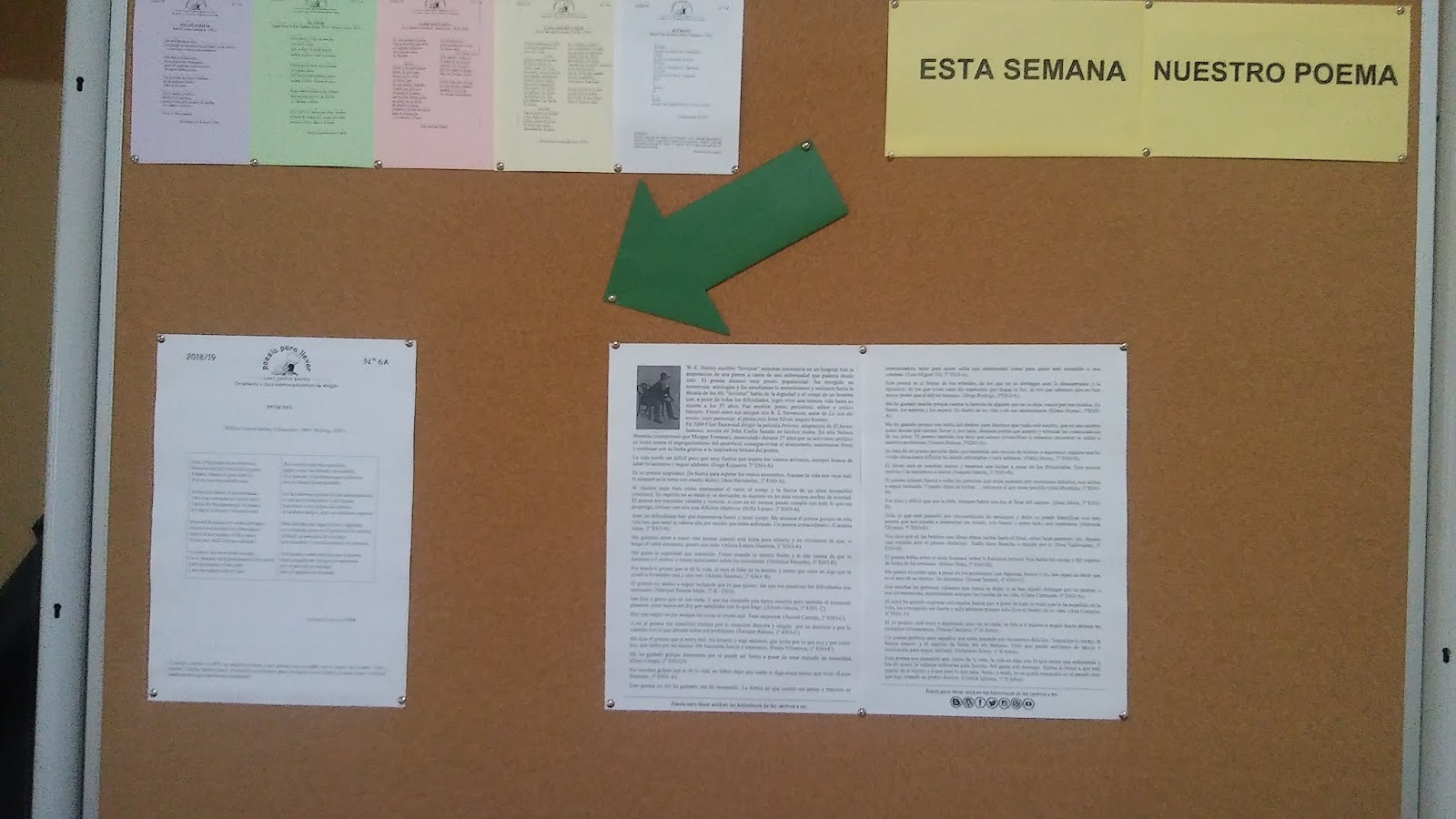 Muchísimas gracias a nuestras compañeras del IES Goya por esta elección, seguro que todos los alumnos disfrutan tanto con esta lectura como los suyos. Compartimos varias fotos relacionadas con cómo han trabajado el poema y varios enlaces con secuencias de la película, el poema recitado en inglés y el blog de la biblioteca del IES Goya con la presentación de PPLL y una entrada sobre el día de las bibliotecas: