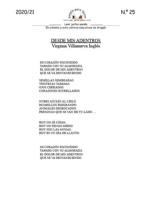 Desde el CPEPA Río Guadalope comparten con nosotros el poema que han seleccionado para el NÚMERO EN BLANCO. Nos lo presentan con el formato habitual de PPLL, es decir, con comentarios en la cara B.
