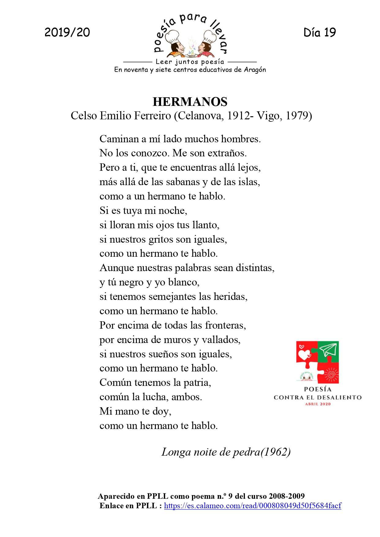 Poesía contra el desaliento. Día 19. HERMANOS, Celso Emilio Ferreiro