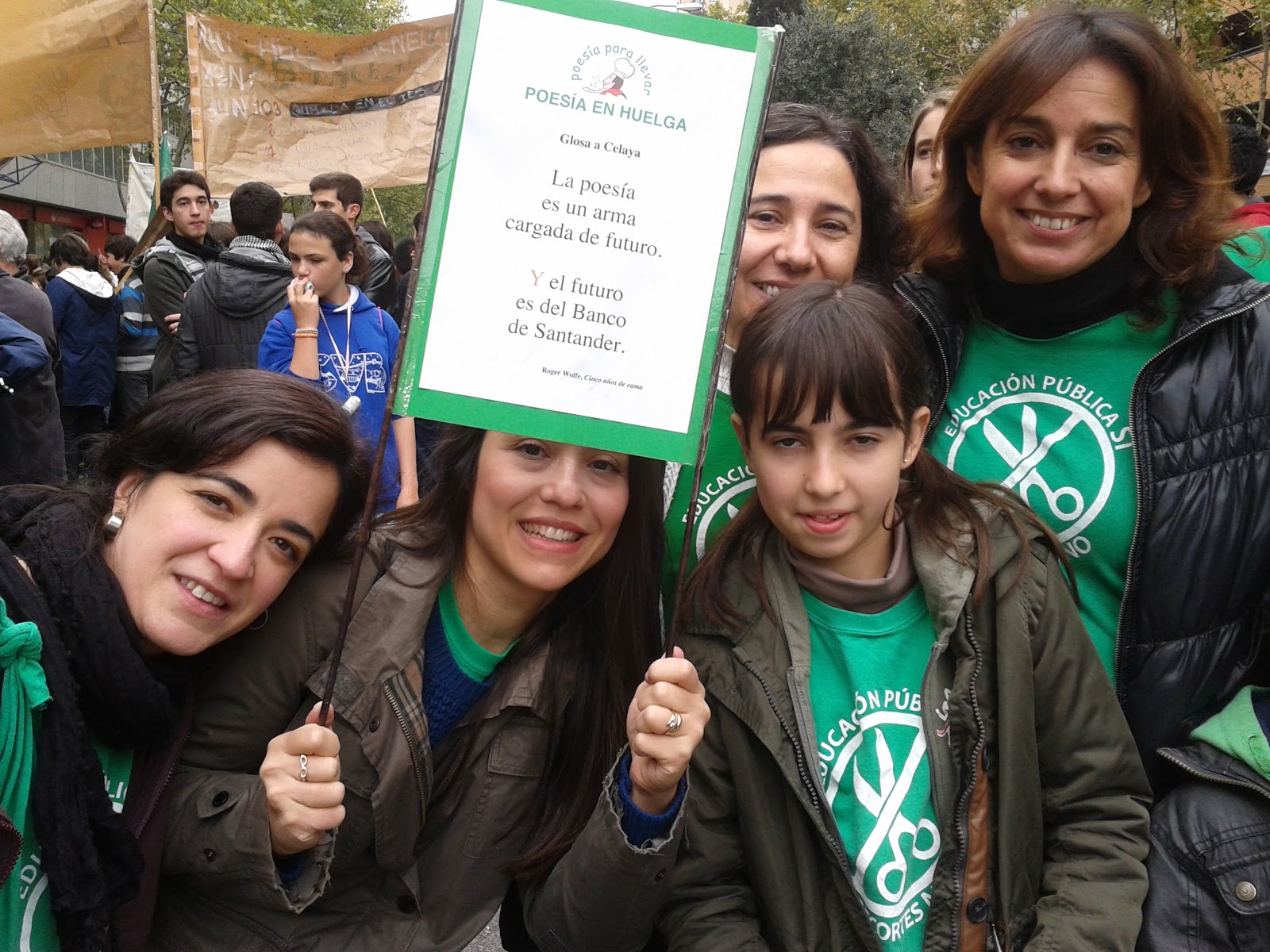 Desde el IES Cabañas de La Almunia, en compañía del Comando del IES La Azucarera, nos llegan protestas líricas, recitadas ayer por las calles de Zaragoza: