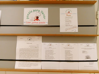 Mientras tanto, envían fotos de su expositor actual y de sus alumnos recogiendo los poemas y haciendo actividades en el aula.
