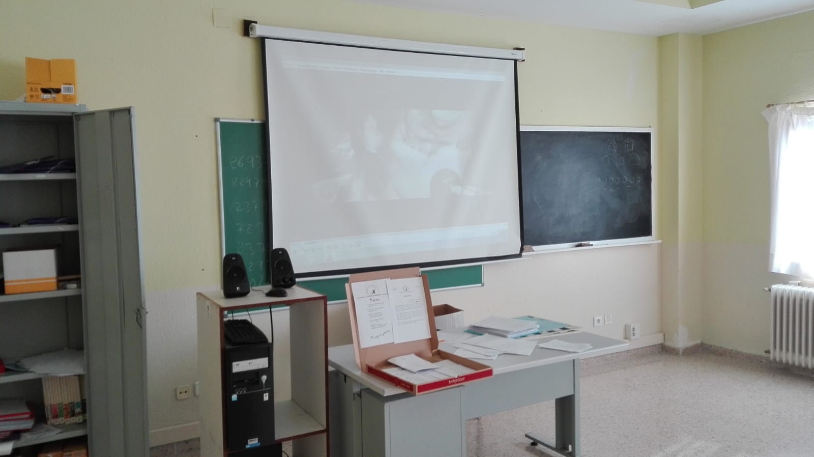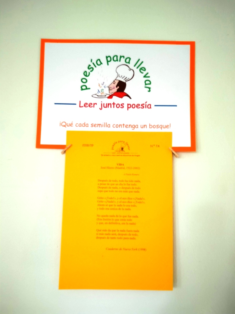 – En la calle Lourdes está la sede del centro, un edificio antiguo, casi centenario, y pequeño con solo cinco aulas. Como no tienen espacio para biblioteca han colocado en la entrada el expositor y en las aulas carteles en los que cada semana ponen el nuevo poema.