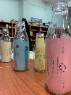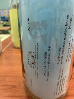 …aprovecho para enviaros unas fotos de la rincón de la poesía que hemos creado este año en la biblioteca. Jugando con el nombre de «poesía para llevar» hemos convertido los poemas en lo que sacia nuestra sed de poesía y los hemos metido en botellas. Junto a las botellas hemos colocado poemas que incluyen la palabra «sed» y la foto de sus autores. Entre los autores que han hablado de la sed en sus poemas hemos encontrado a Federico García Lorca, Octavio Paz, Rosalía de Castro, Antonio Machado, Alejandra Pizarnik o César Vallejo. Os adjunto fotos de la instalación, aunque en ellas apenas se ven los poemas relacionados con la sed y las fotos de los autores. Cuando regresemos al centro os podré enviar más fotos.